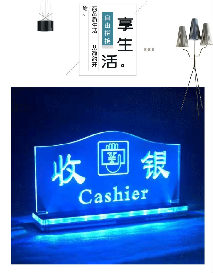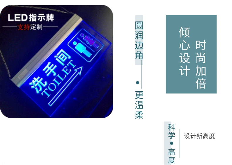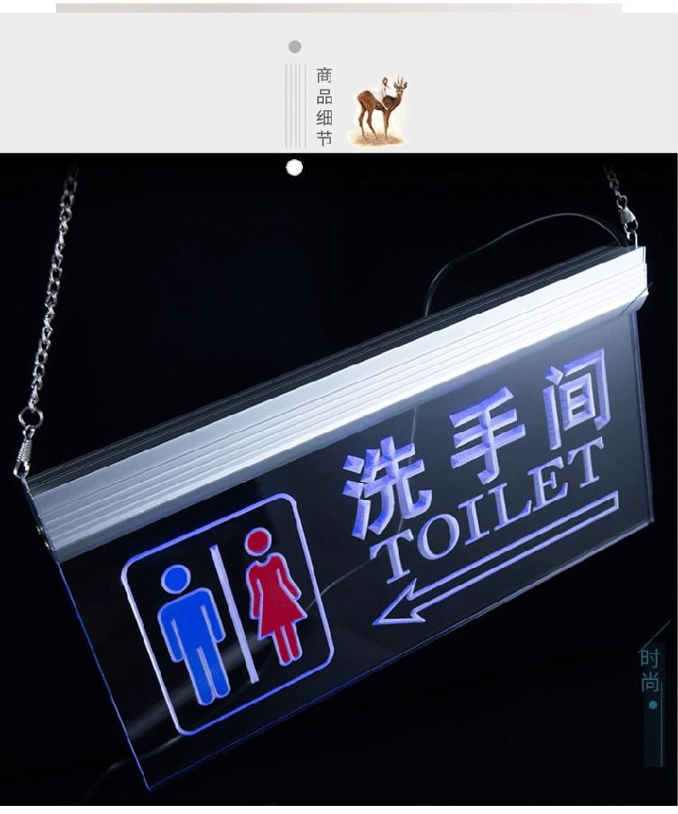 亞克力工廠定制發(fā)光標識牌,桌面擺件臺卡,標簽,洗手間,安全通道,收銀臺等等指示標識牌定制;