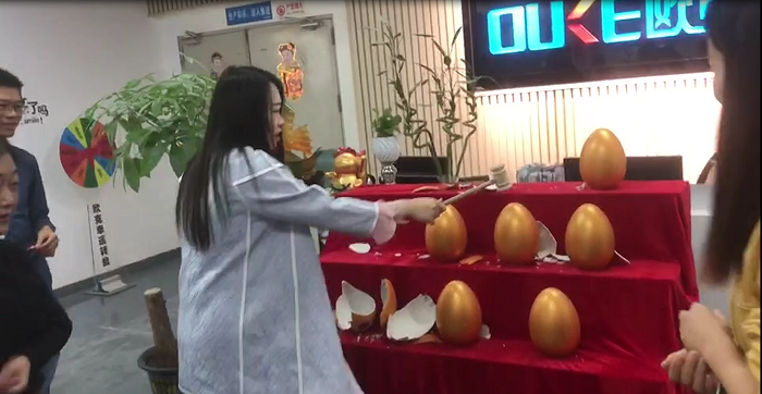 本次砸金蛋中現(xiàn)金大獎(jiǎng),旨在獎(jiǎng)勵(lì)近段時(shí)間業(yè)績達(dá)標(biāo)、業(yè)績突出的業(yè)務(wù)精英,提高精英們的福利。本次砸金蛋的精英有4個(gè)人,