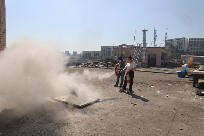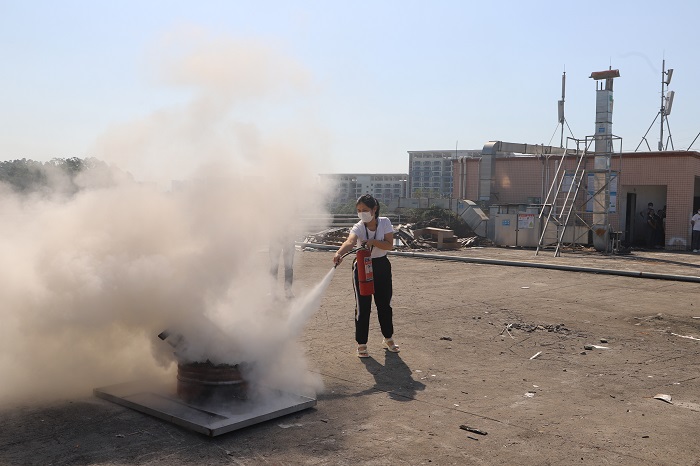 此次消防演練,分為兩部分的演練,一部分是粉狀滅火器的演練,另一部分是消防水管的演練,不同的滅火器材,有不用的使用方法,干粉滅火器使用前需要把安全扣拉開(kāi)和拔出來(lái),擠壓才會(huì)噴出干粉,然后把噴頭火苗噴就可以。而用水滅火,則需要對(duì)接水管,把水管捋直,打開(kāi)水閥門(mén),才能正常出水滅火。